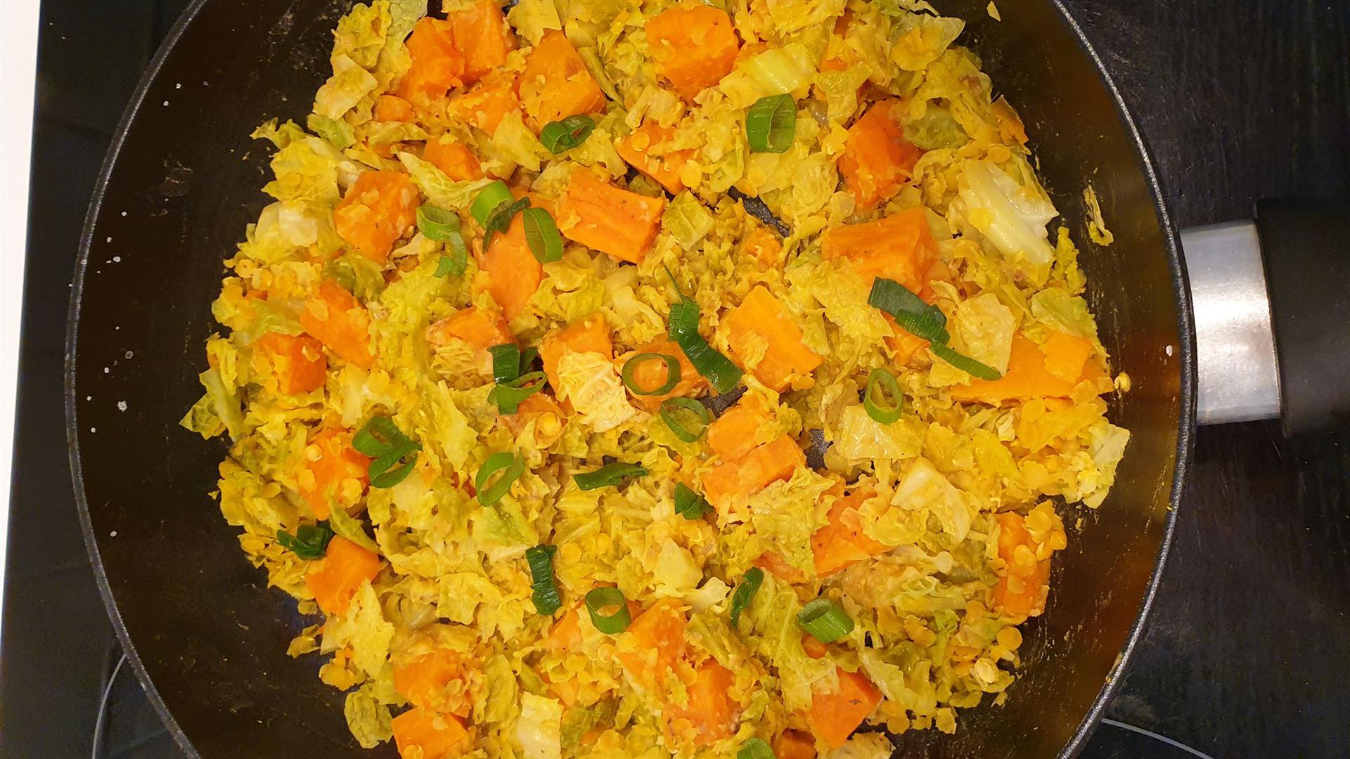 Cremige Wirsing-Süßkartoffel-Pfanne